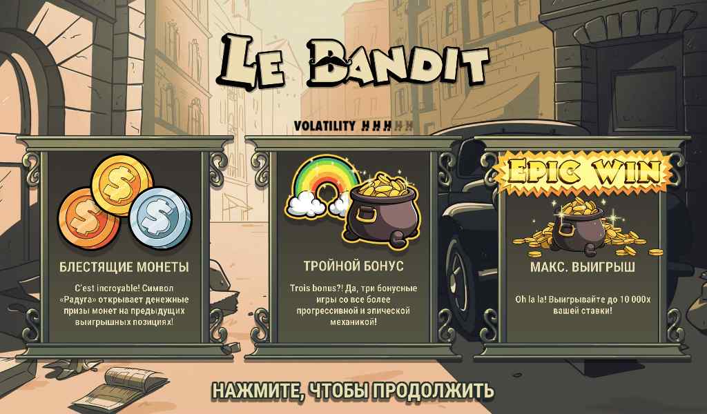 Волатильность Le Bandit находится на среднем уровне, что делает игру подходящей для большинства игроков. Средняя волатильность означает, что выигрыши могут быть не слишком частыми, но при этом достаточно крупными.